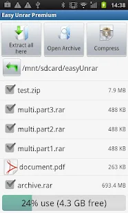 6. Easy Unrar, Unzip & Zip application Free distinctive Android smartphones Application No. 1 for the pressure to compress and decrypt files allows you to unzip the files and compressed and saved to the archive format RAR easily application supports all versions of the file format RAR files protected by a password and compressed files multipart program you can easily browse and unzip compressed files from the archive without decompressing the entire Tstttsa just choose the files you want are browsing and extraction, with the possibility of running directly into the application without using another browser.